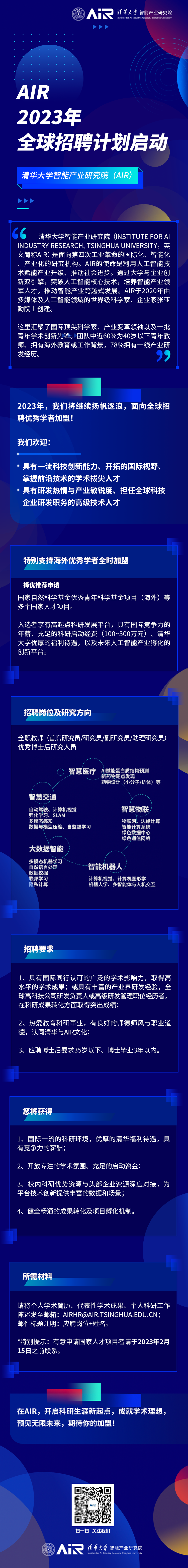 上一条:AIR牵头:国家重点研发计划“异构设备智能计算关键技术标准研究与应用”项目启动会顺利召开 下一条:清华百度升级AIR白皮书2.0:发布车路协同重大突破,全自动驾驶商业化时代到来