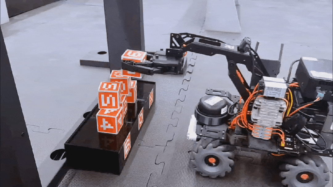每轮比赛开始时,官方人员会在比赛场地上的三个矿石区随机放置矿石,机器人须自动从矿区获取矿石,在完成基础矿石摆放后,可再通过在底层矿石上“搭积木”获得额外奖励分。