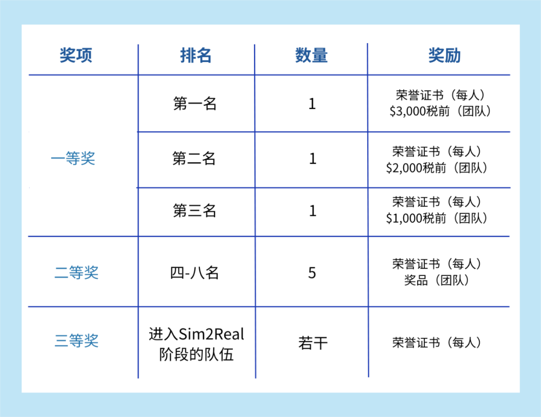 在AXS正式赛中,选手无需线下参与比赛。今年Sim2Real组委会特别推出在ICRA(日本横滨)现场设置的线下比赛场地,选手可以亲自在真机上部署调试算法完成比赛。该线下赛单独设置评奖,且积分不计入正式赛积分。参赛队伍无需额外报名,进入正式赛最终阶段的队伍自动获得参与线下赛的资格。