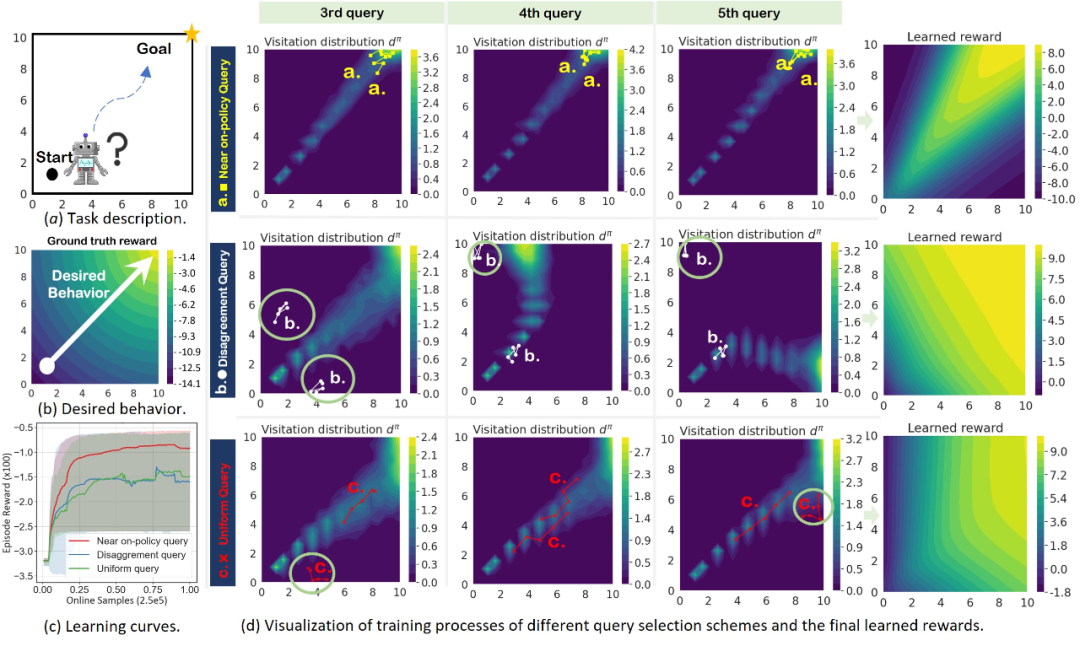 摘要     基于人类偏好反馈的强化学习(PbRL)旨在从人类偏好反馈中学习到反映人类真实意图的奖励函数和策略,但该类方法的性能通常受到昂贵的人类标注反馈的制约。为了提高人类反馈利用效率,大多数现有的PbRL方法在挑选轨迹片段以进行人类偏好标注反馈的过程中,力求寻找最具“信息量”的轨迹片段偏好反馈,以最大程度地改善奖励模型的全局质量。但令人感到反直觉的是,课题组发现这并不一定会导致强化学习策略性能的提升。为了解释这一现象,课题组提出了现有PbRL方法的轨迹片段挑选方案中一个长期被忽视的问题:片段挑选与策略学习不匹配。本研究表明,选择表面上具有高信息的轨迹片段反馈以改善奖励模型的全局质量,实际上可能与强化学习智能体当前所关注的状态动作空间不匹配,因此在当前局部的策略学习上提供了较少的帮助,导致策略性能提升缓慢,同时也使得人类反馈效率低下。课题组提出了一种片段挑选与策略学习匹配的方法QPAQuery-Policy Alignment)来解决这个问题,QPA包括策略匹配片段挑选和混合经验回放这两个关键技术。课题组的方法简单而优雅,可以仅更改几行代码而轻松地纳入现有标准PbRL代码框架中。在强化学习标准测试环境上的广泛实验表明,QPA展示了更高的人类反馈利用效率和更高的RL策略性能,验证了解决PbRL中片段挑选与策略学习不匹配问题的重要性。