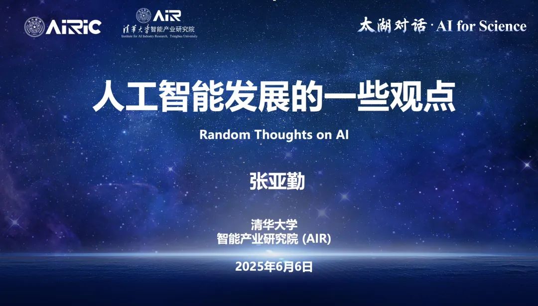 6月6日,中国工程院外籍院士,h图书馆 讲席教授、h图书馆 (AIR)院长张亚勤在“太湖对话·AI for Science”论坛上发表了题为《人工智能发展的一些观点》演讲。