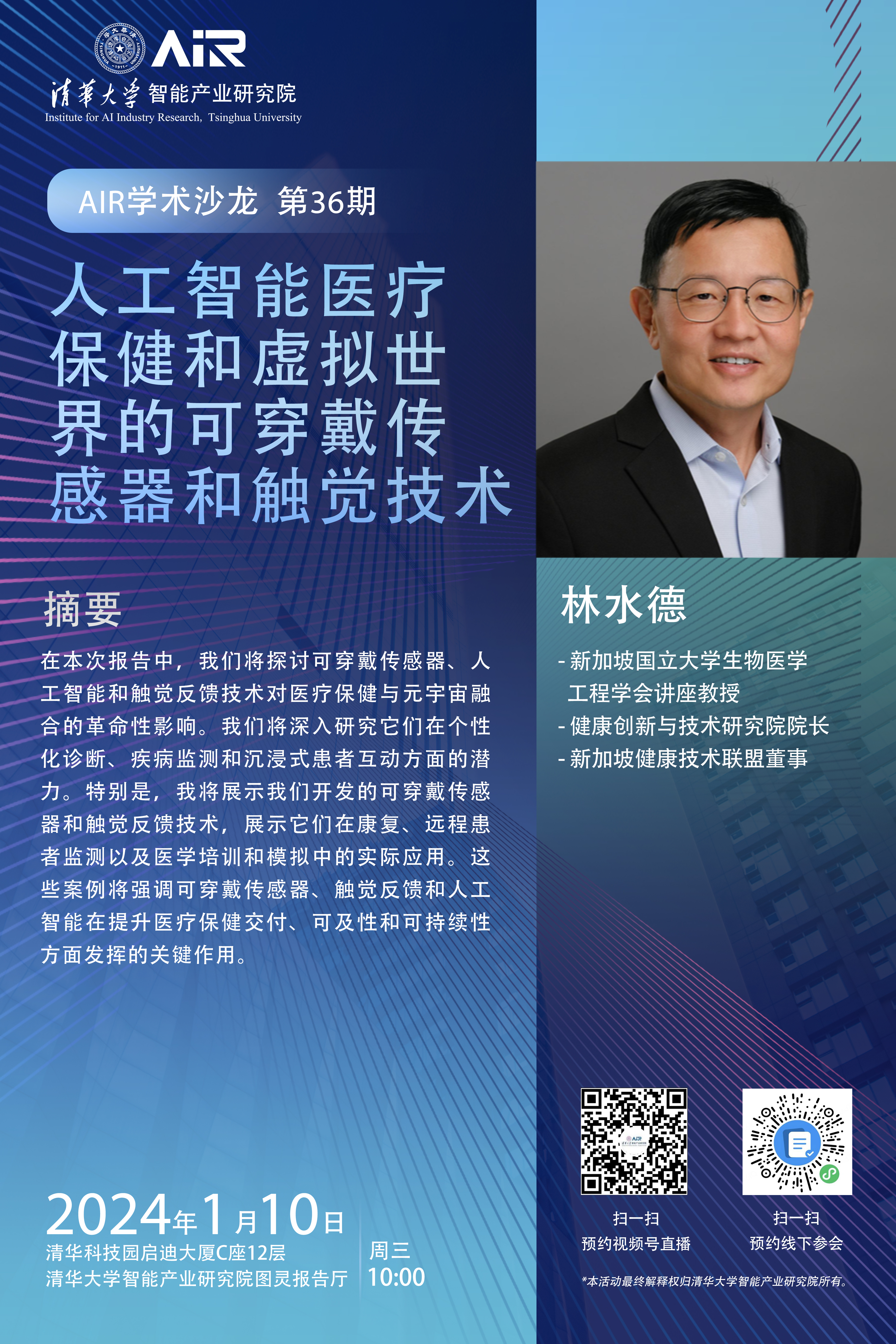 林水德教授于1月10号(周三)上午10:00的讲座,欢迎大家预约线下参会,与讲师现场互动: